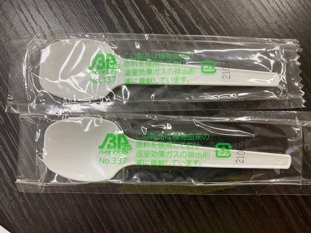 地下1階食品サービスカウンターで,お客さまからのご要望があった際にお渡しするプラスチック製スプーンは,植物由来の原料を使用しており,温室効果ガスの排出削減に貢献しております。
