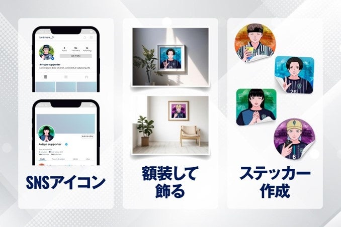 本NFTの保有者は、自分だけの特別なアートワークとして自身のSNSのアイコンに設定したり、またアートワークを額装して部屋に飾ったり、自分だけのグッズを作るなど、アビスパ福岡を応援する様々な楽しみ方が可能です。