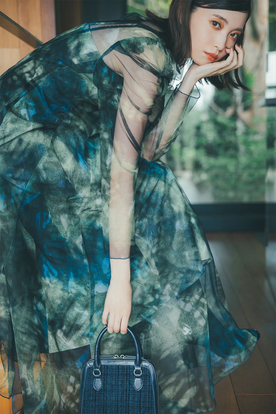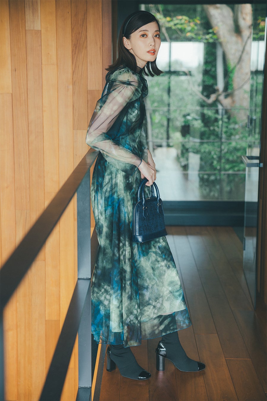 インナードレスのプリントとシアードレスのコントラストが奥行きを感じさせる