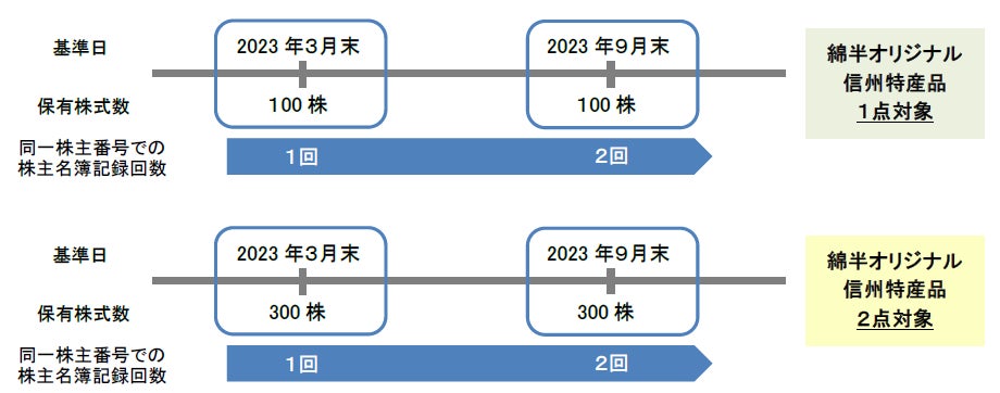 継続保有については、毎年3月31日および、9月30日の連続2回、同一の株主番号で株主名簿に記載されていることが条件となります。