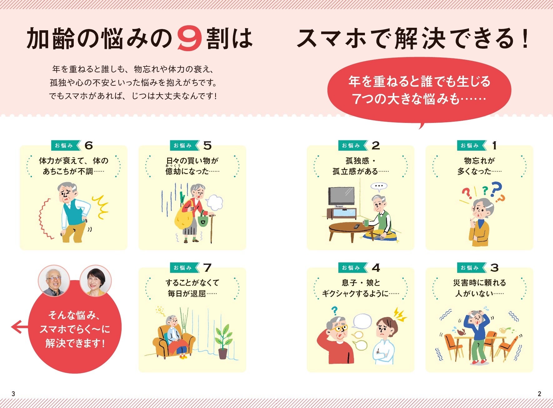 中高年の多くの人が抱える悩みの9割は、スマホが解決してくれます! 「もの忘れ」「目や耳の衰え」「お金の心配」「孤立の寂しさ」「災害への不安」……50代以降の「人生の後半戦」は、じつはスマホが最強の武器になる!