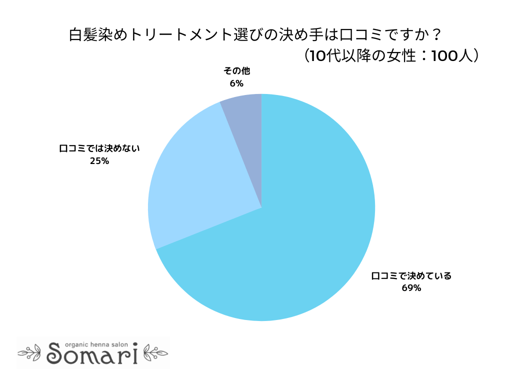 「白髪染めトリートメント選びの決め手は口コミですか?」とアンケート調査した結果、「口コミで決めている」と答えたのは69%でした。