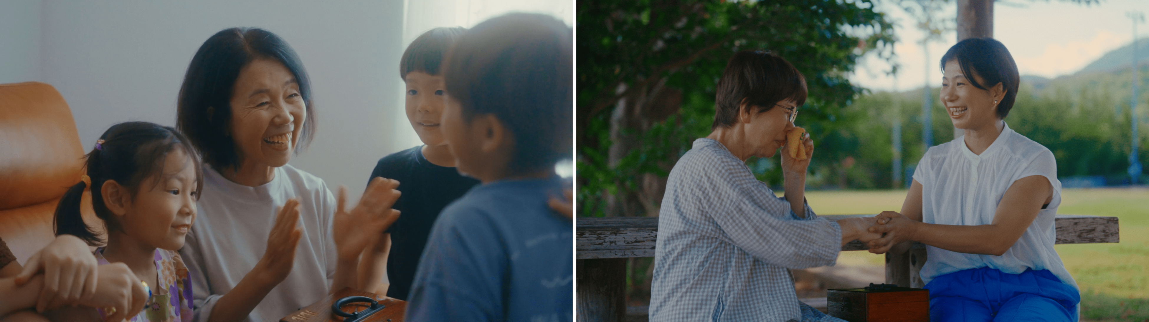 本ムービーは、コロナ禍で自由に会いに行くことができなかったご家族や、すぐには駆けつけられないような遠い場所に住むご家族に出演いただき、家族を思いやる気持ちとともにくすり箱を直接届けに会いに行く様子を撮影させていただきました。幅広い世代の方々に、何気ない日常のありがたみと家族のつながりの大切さを再認識いただけるような内容となっています。