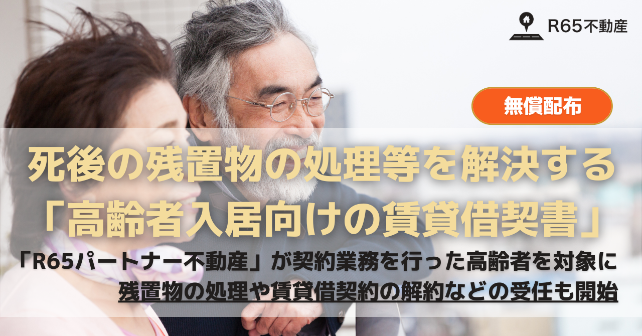 ■概要:「高齢者入居向けの賃貸借契約書」を無償配布。R65不動産が、死後の残置物の処理等の受任者に。