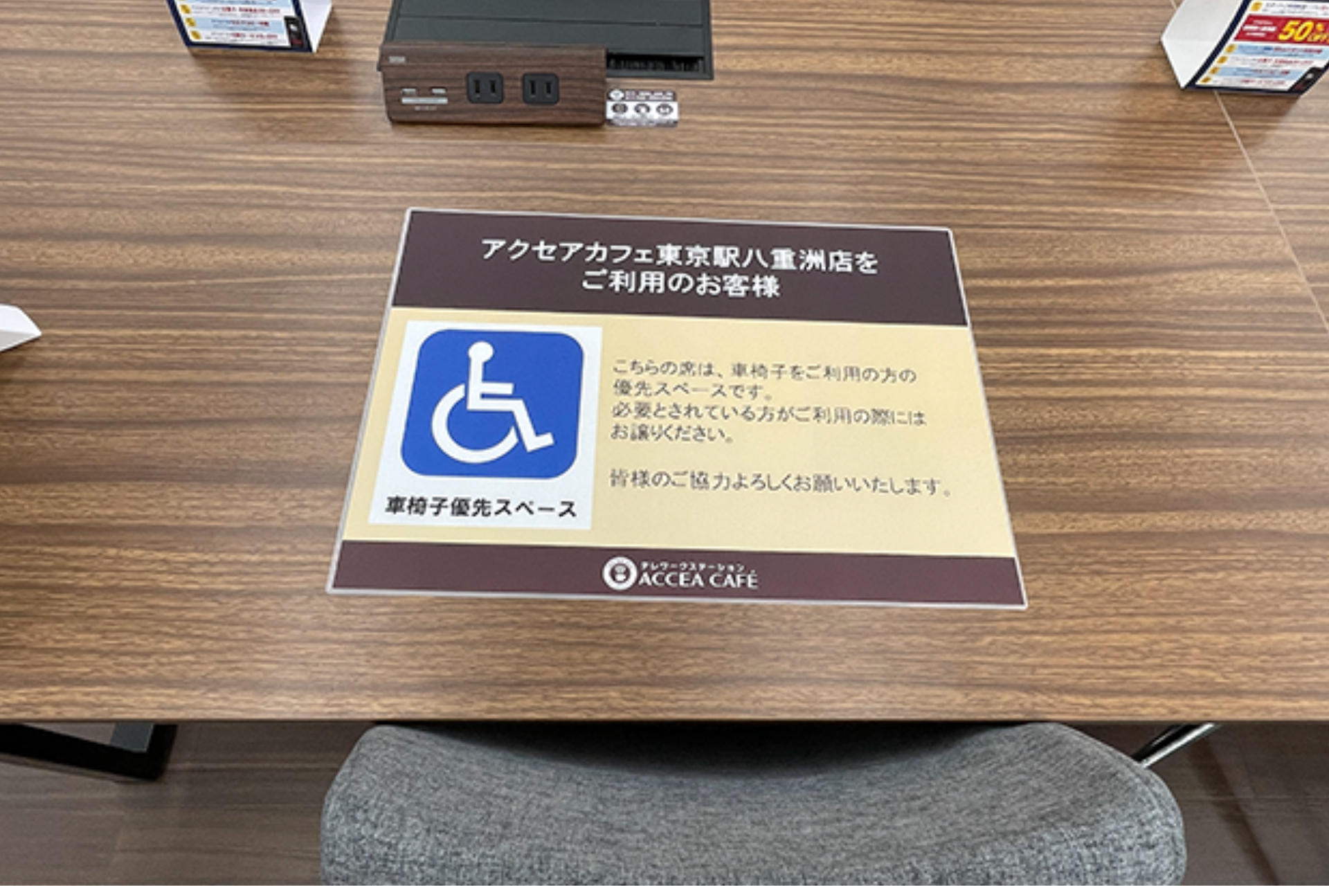 アクセアカフェ東京八重洲店からバリアフリー認証の導入を始め、実証実験を行いながら今後導入店舗数を増やしていくための協議をしています。