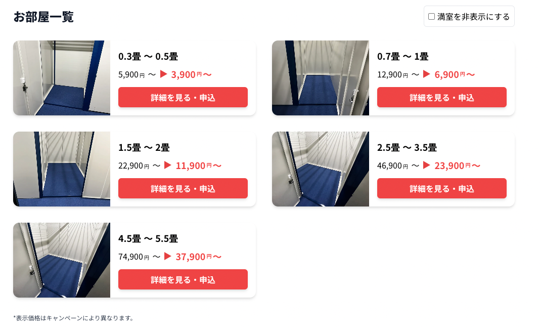 荷物以上に大きな部屋を借りてしまうことや、狭すぎて荷物が入らなかったなんていうトラブルを回避できます。