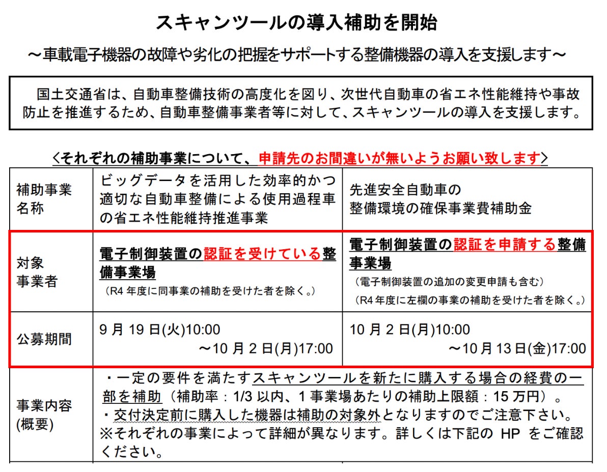 【10月2日締切!電子制御装置の認証を受けている整備事業場が対象のスキャンツール導入補助金】