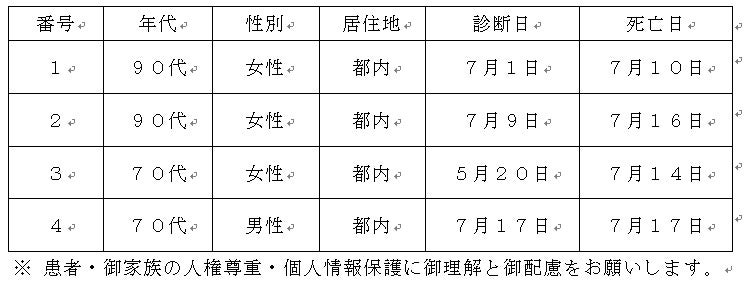 新型コロナウイルスに関連した患者の死亡について business Twitter Facebook はてブ Pocket LINE コピー 2022.07.20 この記事は約1分で読めます。 都内で新型コロナウイルスに感染した方が死亡されましたのでお知らせします。 お亡くなりになった方のご冥福をお祈り申し上げます。