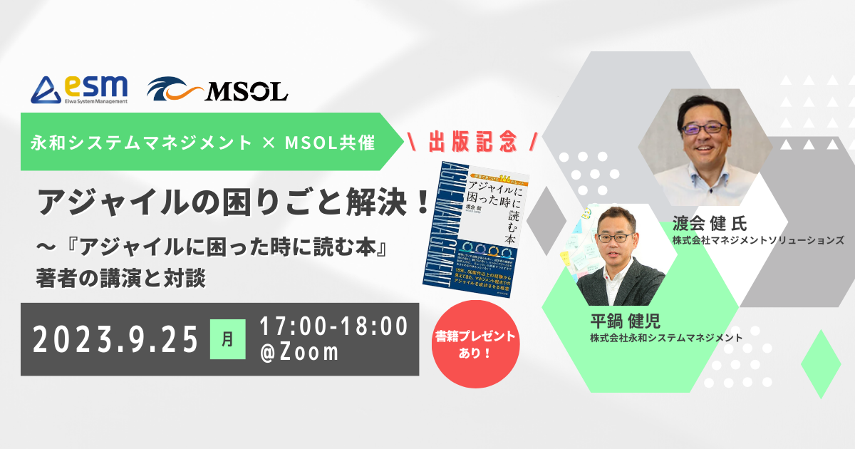 当ウェビナーでは、アジャイル歴約15年で50案件以上のアジャイルプロジェクト実践経験をもつ、当社Digital事業部の渡会健が登壇し、2023年8月23日に発刊した著書『アジャイルに困った時に読む本』をもとに、アジャイルのよくある誤解や課題と対処法について、マネジメント視点でわかりやすくお話しします。また、アジャイルの誕生から関わり日本に普及させた、アジャイルの第一人者、永和システムマネジメント代表の平鍋氏との対談により、アジャイル開発の現場でよくあるアジャイルの疑問にお答えします。