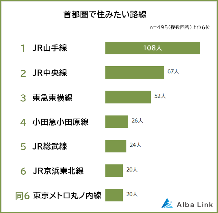 今回、株式会社AlbaLink( https://albalink.co.jp/ )が運営する訳あり物件買取ナビ( https://albalink.co.jp/realestate/ )は、全国の男女495人を対象に「首都圏で住みたい路線」についてアンケート調査を実施しました。