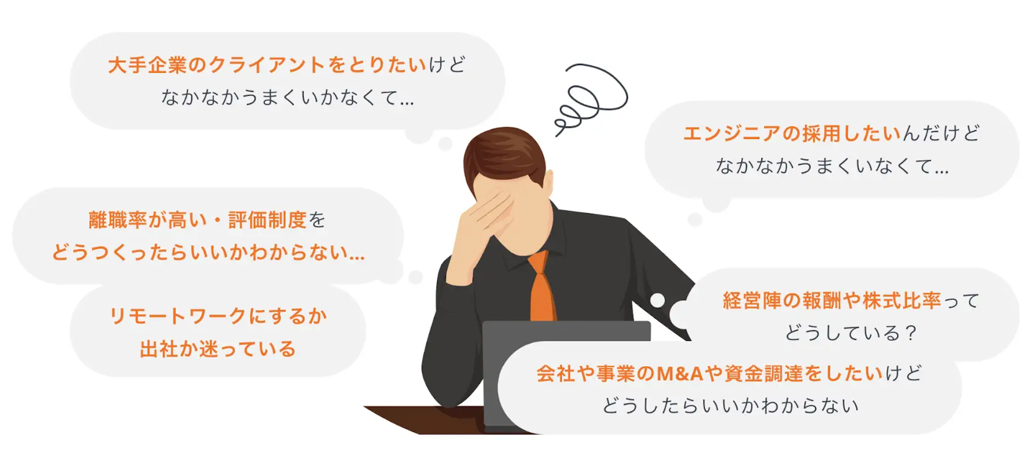 9年以上経営者支援を行ってきた過程において、次のような悩みを伺うことが多くありました。