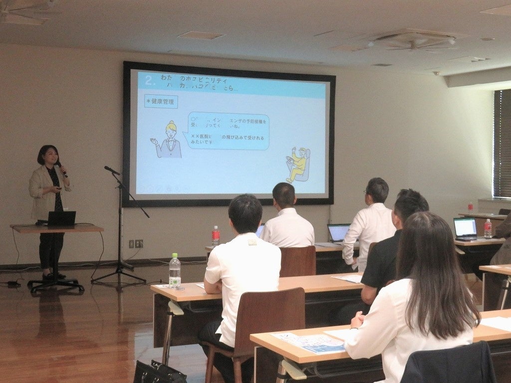 各社の事務系社員が参加。コンテストのテーマ「やさしい運転・やさしい言葉・やさしい接客、ホスピタリティ」 に沿って、選手が各自で設定した発表テーマをもとに、持ち時間5分で発表。その内容、インパクト、話し方・姿勢などを審査。