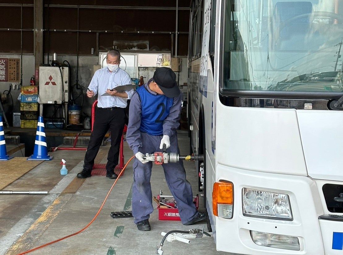 点検整備不十分、整備作業ミスによる大型車両の車輪脱落事故が全国的に増加傾向にあることを踏まえ、競技内容を大型バスのタイヤ交換作業に決定。