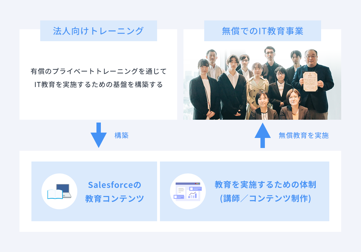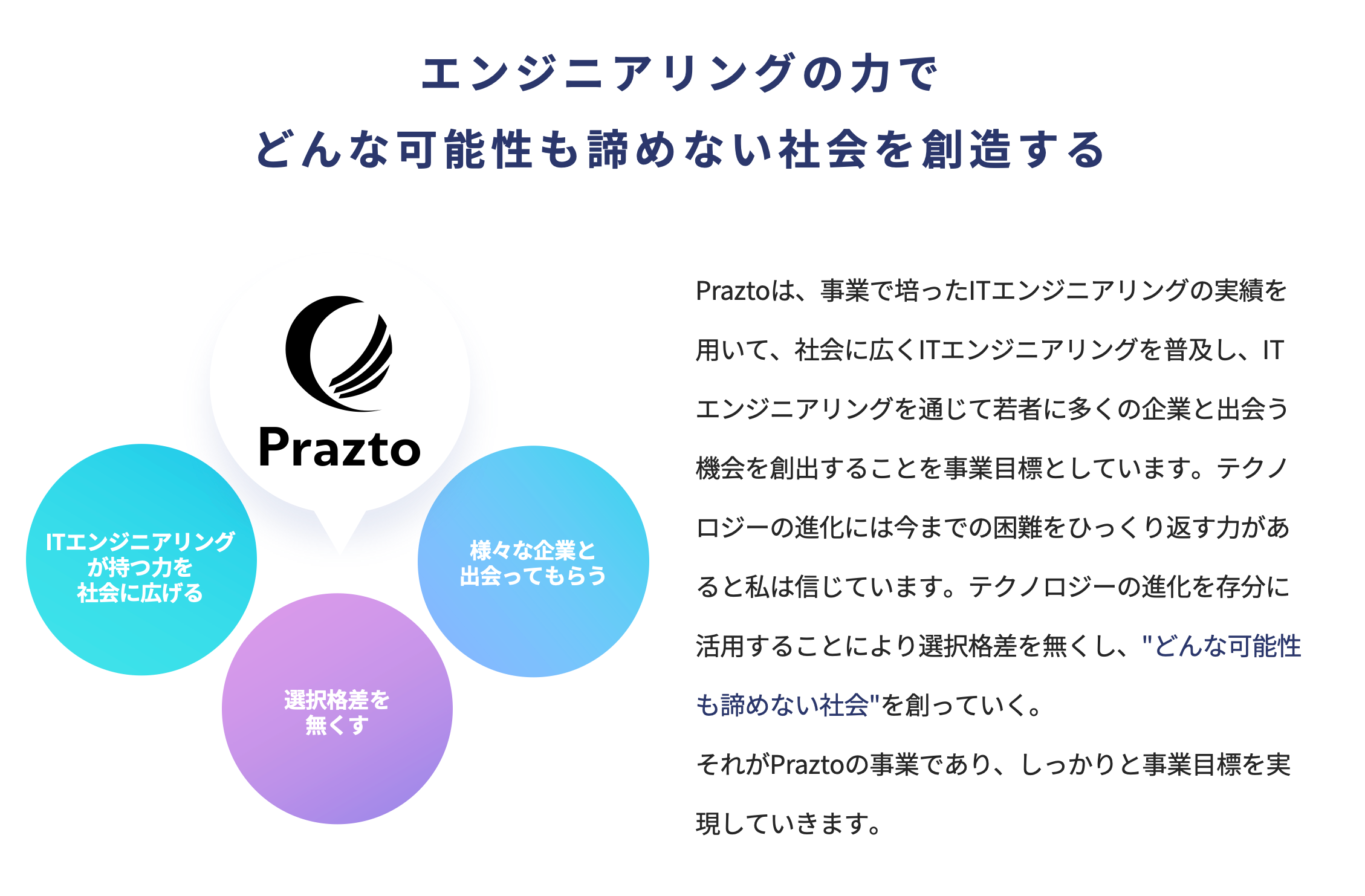 Praztoは、Salesforceを中心としたSaaS導入における企業課題の解決を力強く支援する「SaaS導入コンサルティング事業」、法人及び福祉向けに展開する「IT教育事業」を展開しています。