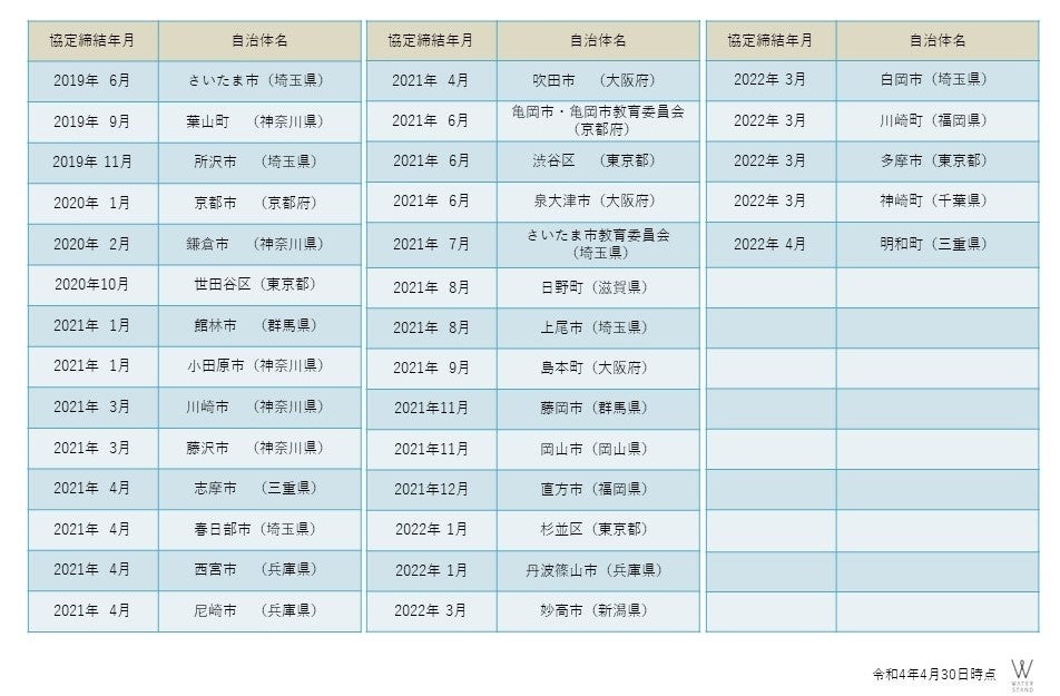 ■自治体との協定締結実績一覧 (2022年4月末時点)