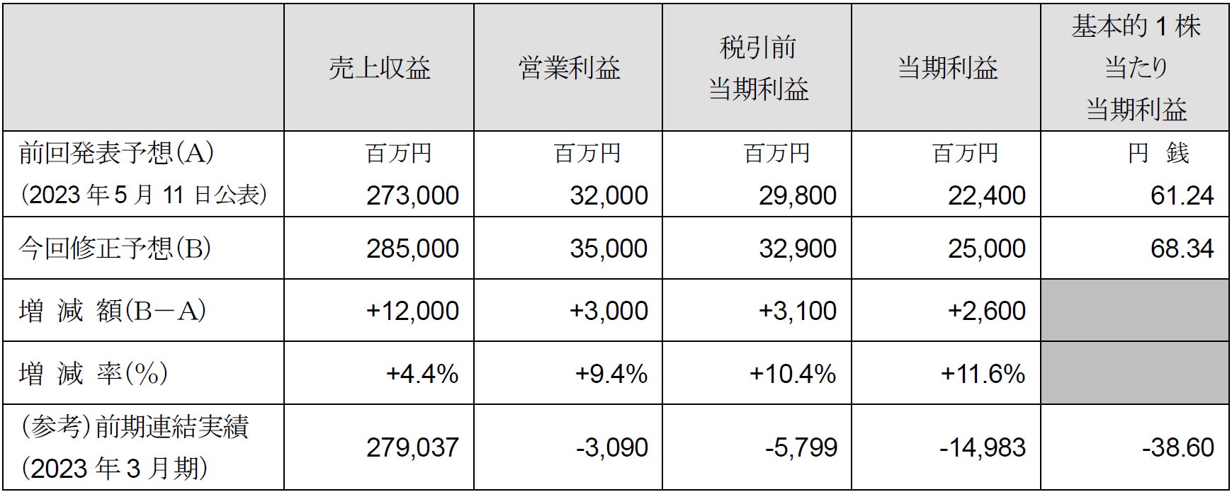 1. 2024年3月期(2023年4月1日~2024年3月31日)連結通期業績予想の修正