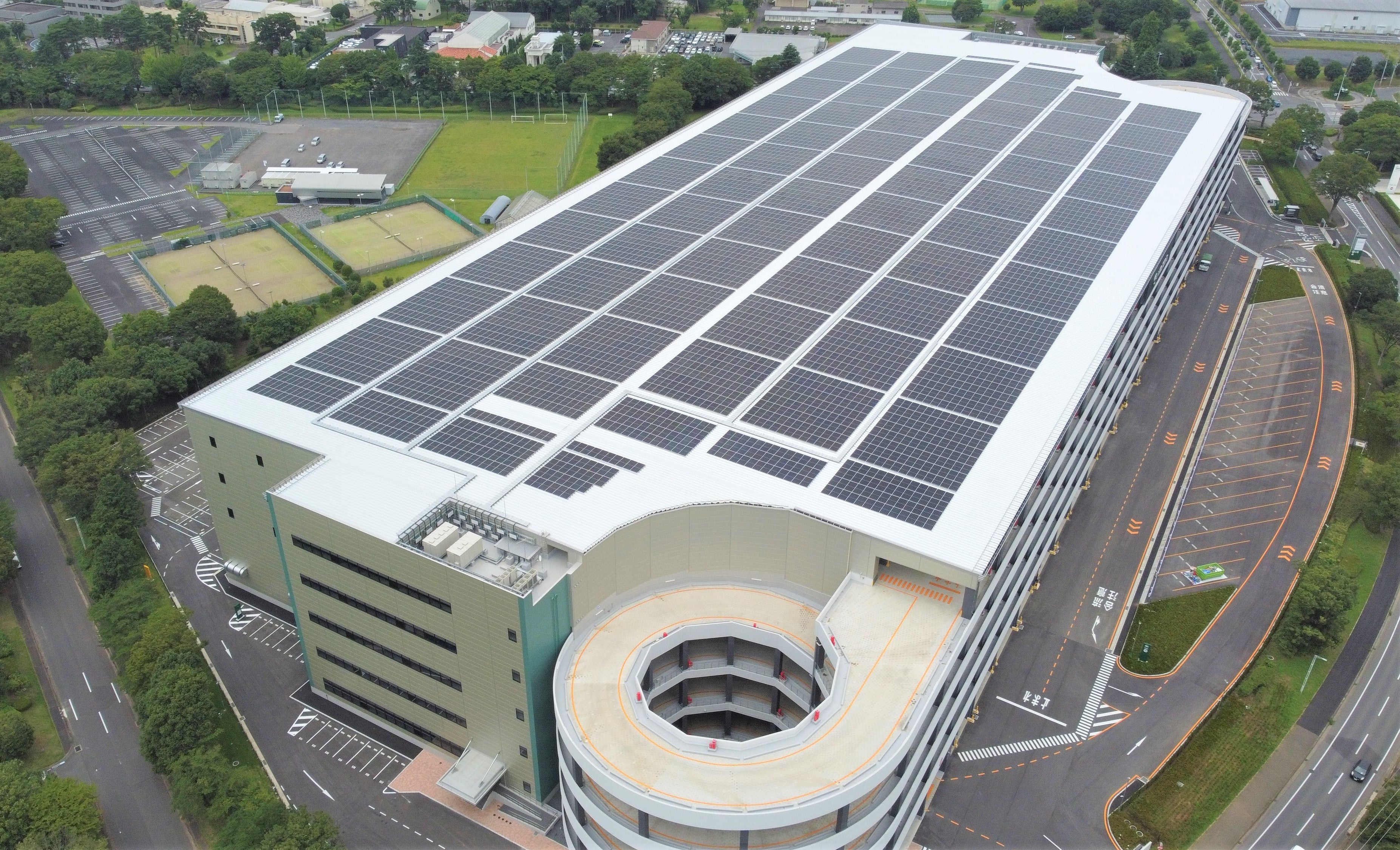 茨城県つくば市の物流施設「プロロジスパークつくば3」の屋根を賃借し、屋上に7,280枚の太陽電池モジュールを設置した本発電所は、一般家庭約1,385世帯分の消費電力に相当する約416万kWhの年間発電量を見込んでおります。