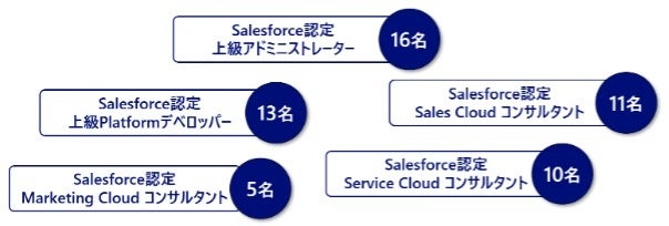 当社は2023年1月、Salesforceのコンサルティングパートナーに認定されており、Salesforceエンジニア、コンサルタントが多数在籍しているため、マルチプロダクトでの対応やSalesforceを中心とした業務プロセスのシステムインテグレーションが可能です。