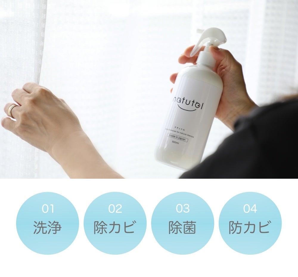 natutolだけで洗浄から防カビまで4役を果たしてくれるところ。