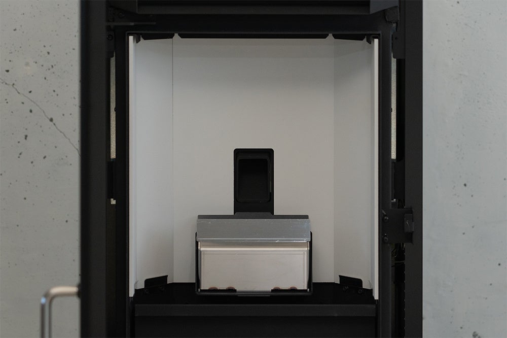 シンプルな意匠を象徴する扉は、炎が主役となるよう、継ぎ目のない一枚の板金からできています。重厚感のある黒色の扉は、炎のオレンジ色をより強調させ、美しさを引き立ててくれます。