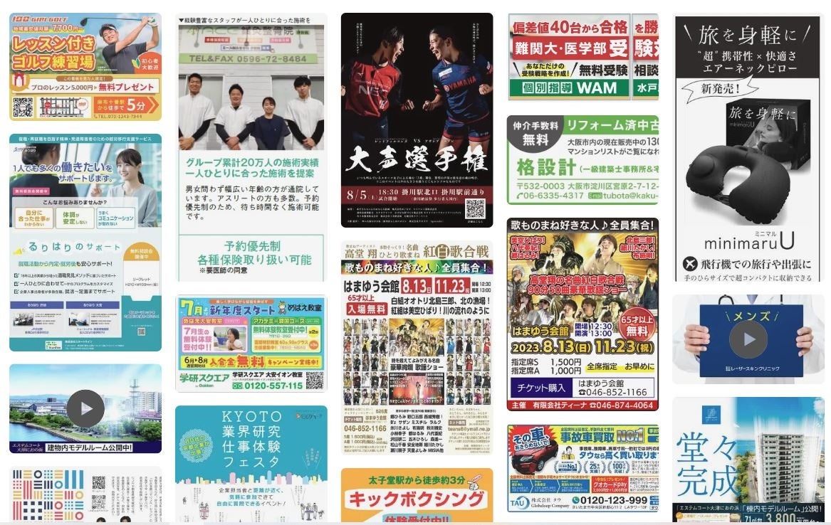 今回新たに追加されたクリエイティブ事例のページでは、広告事例を一目で多数見ることができ、自社広告デザインの参考としてご活用いただけるようになりました。