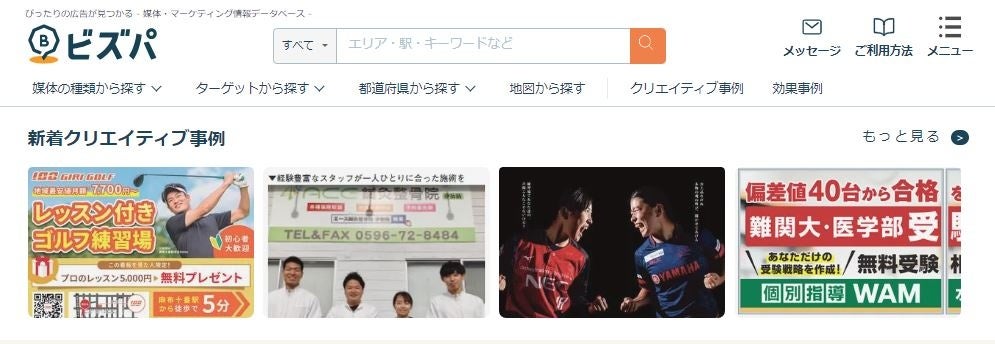 当社は「もう広告で迷わせない」をミッションに、全国の広告やマーケティング情報の検索プラットフォーム「ビズパ」を提供しています。これまで多くのご要望を頂いていた広告事例をまとめたクリエイティブ事例のページを追加し、よりスムーズに広告出稿のご検討をいただけるようになっています。