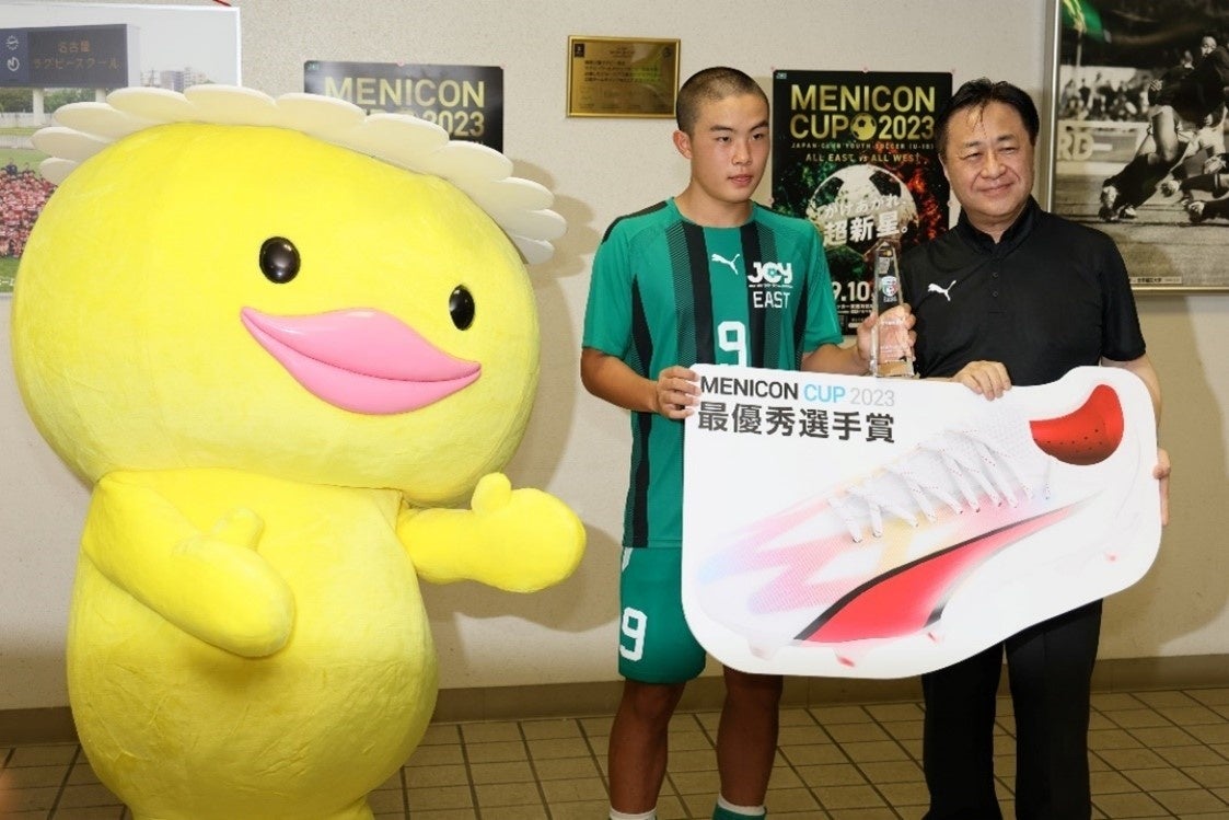 最優秀選手賞に選ばれた吉田選手は、「メニコンカップは自分がMVPを獲りたいと思っていたのでとても嬉しいです。」とコメントし、大久保さんから「これからどのような選手になりたいですか」との質問に、「プロサッカー選手になり、日本代表としてワールドカップで優勝したいです、これから自分に注目してください!」と頼もしいコメントがありました。