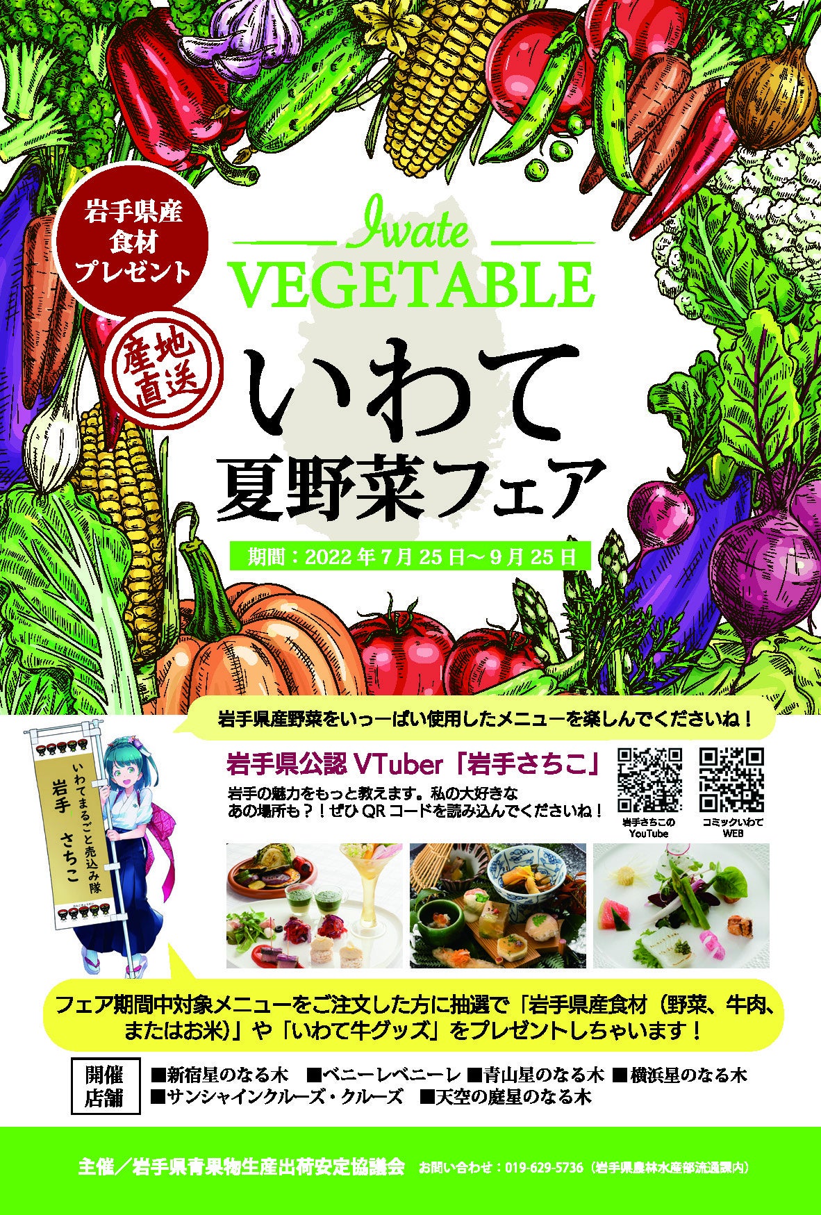 ・各店舗において、岩手県産夏野菜(トマト、きゅうり、ナスなど)をふんだんに使用した特別オリジナルメニューを提供いたします。
