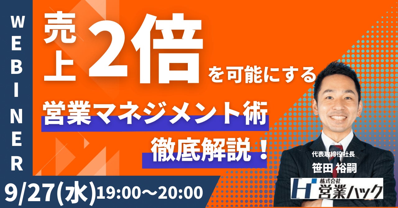 このウェビナーは「売上を2倍にしたい」とお考えいただいている経営者やマネジャーの方に参加いただくことで、営業マネジメントの具体的なコツ・考え方をお伝えすることで改善に繋げていただくことが目的であり、私のミッションと捉えています!