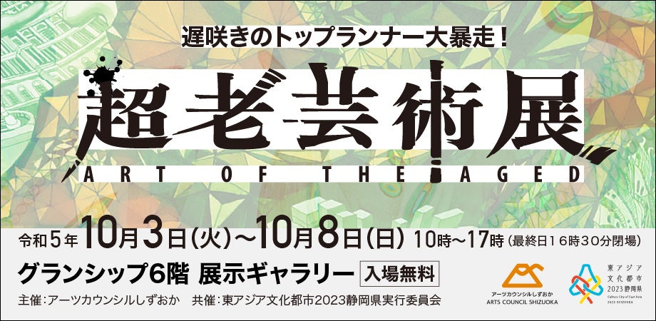 このたび東アジア文化都市2023静岡県のプログラムの一環として、初の大規模展覧会を開催します。会場では、静岡県をはじめ全国各地で人知れず創作を続ける22組の超老芸術家による1,500点を超える作品を一挙公開。さらに、関連セミナーやメタバース上での展覧会(12月公開予定)も開催し、高齢者の芸術表現を体感できる内容となっています。