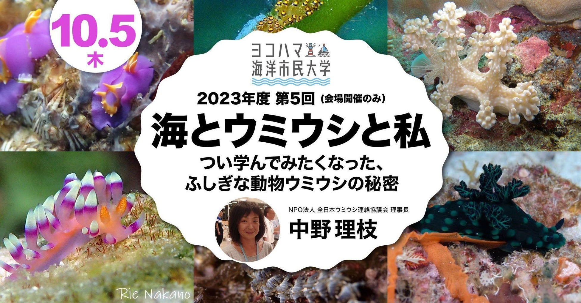 ヨコハマ海洋市民大学実行委員会は2023年10月5日(木)に、ヨコハマ海洋市民大学2023年度講座の第5回目「海とウミウシと私〜つい学んでみたくなった、ふしぎな動物ウミウシの秘密」を開催いたします。この講座は、次世代へ豊かで美しい海を引き継ぐために、海を介して人と人とがつながる“日本財団「海と日本プロジェクト」”の一環です。