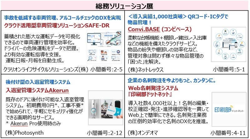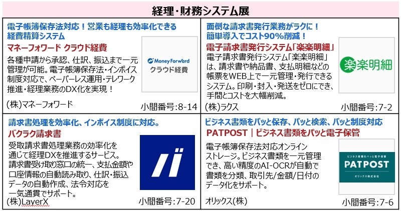 バックオフィスDXPO 福岡‘23 出展製品・サービス(一部抜粋)