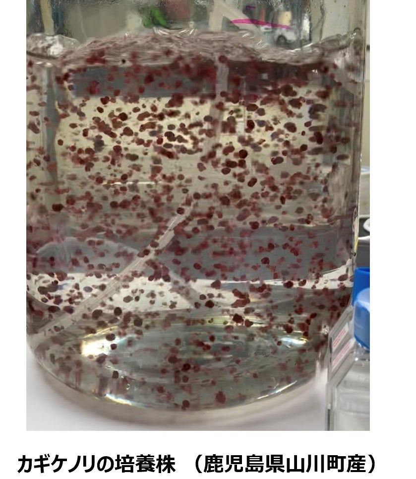 「カギケノリ」は紅藻類という海藻の一種で日本を含む太平洋熱帯海域に生息しており、畜産が盛んなオーストラリアでは「カギケノリ」を牛の飼料に約0.2%混ぜて与えることで、牛の消化過程で発生するメタンガスを最大98%減少させることが確認されています。
