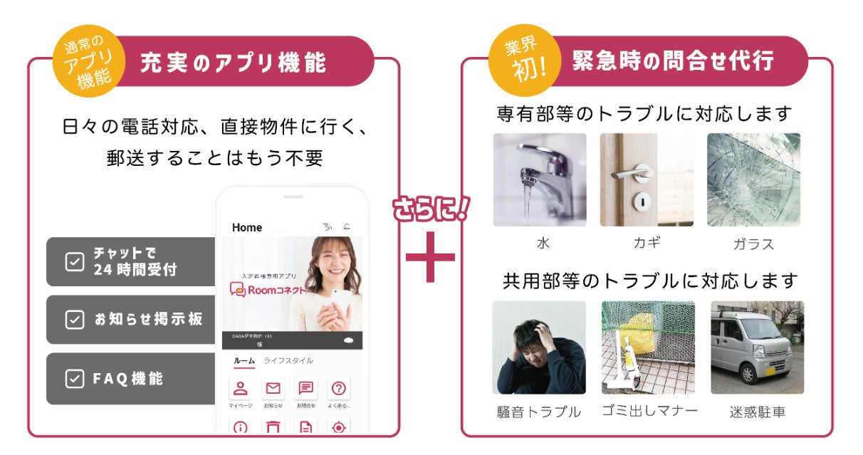 「24時間365日対応の駆けつけサービス」や「近隣トラブル対応サービス」も備えていることから、物件の差別化も期待できます。