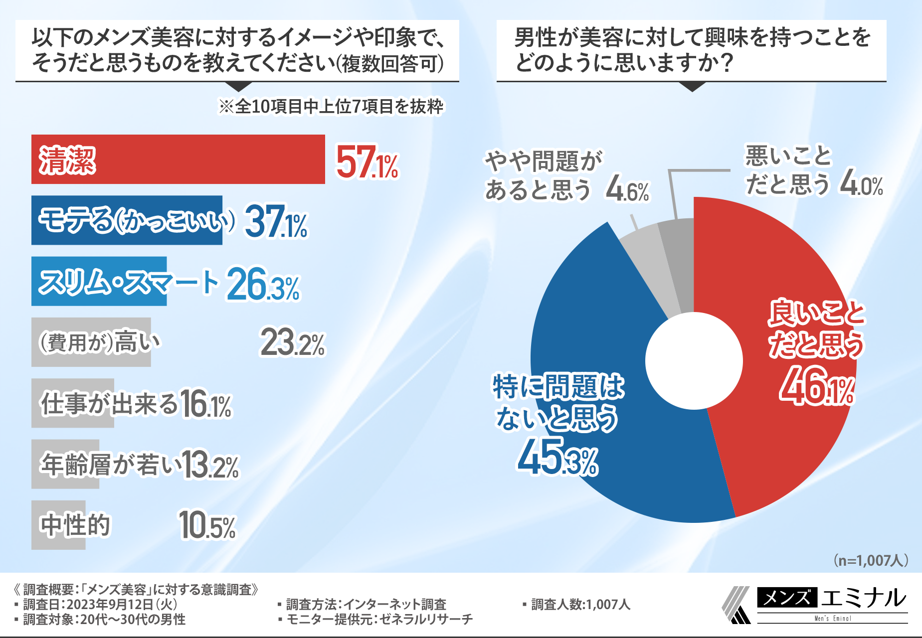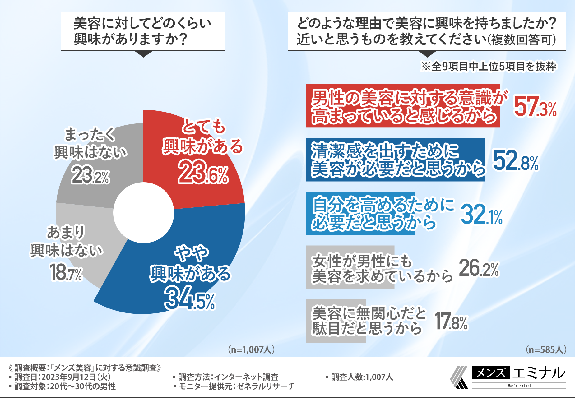 そこで今回、メンズ専用脱毛クリニック・メンズエミナル(https://mens-eminal.jp/lp/?refmedia=31073)は、20代~30代の男性を対象に、「メンズ美容」に対する意識調査を実施しました。