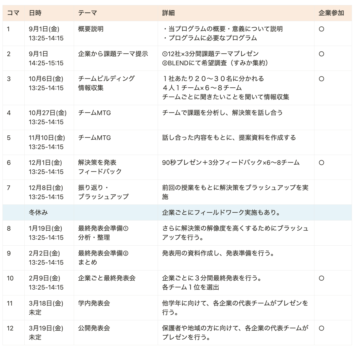 具体的なプログラムの流れとしては、各参画企業から提供される課題に基づき、生徒たちが情報収集やチームでの討議を行い、解決策を提案。最終的には、それを企業の方々へプレゼンテーションし、実際のビジネスシーンでのフィードバックを受ける機会が設けられています。