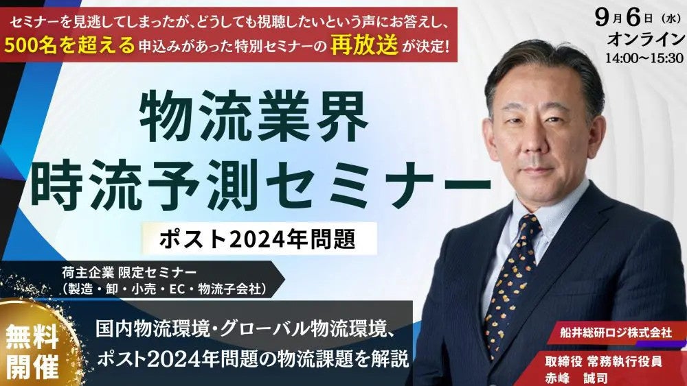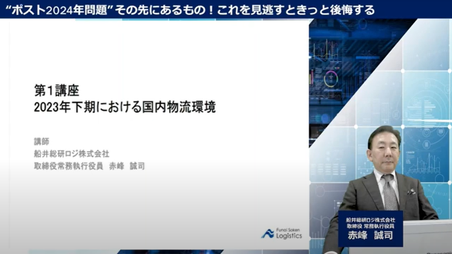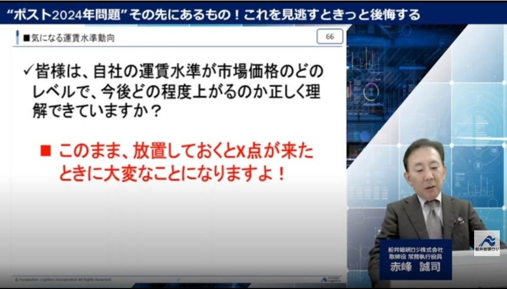 本動画は、物流業界のインフルエンサー・船井総研ロジ 赤峰誠司が仕入れた最新の国内物流環境・グローバル物流環境のトレンドと、2024年問題の先にある物流業界予測を解説した「物流業界 時流予測セミナー」のダイジェスト版です。