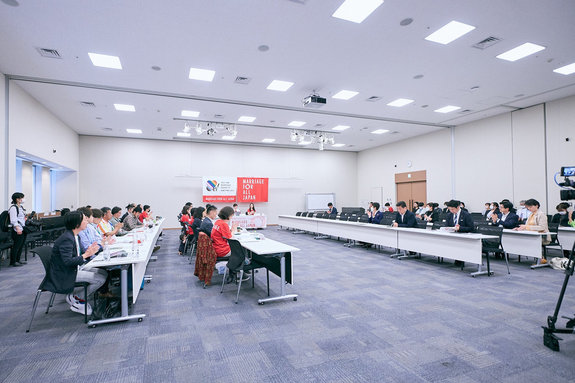 また、憲法学者である木村草太・東京都立大学法学部教授が登壇、ゲストスピーカーとしてこれまでの判決内容の分析解説を実施。その他、出席できなかった議員からもメッセージをいただくなど、結婚の平等(同性婚の法制化)実現を支援する多くの方が集まりました。