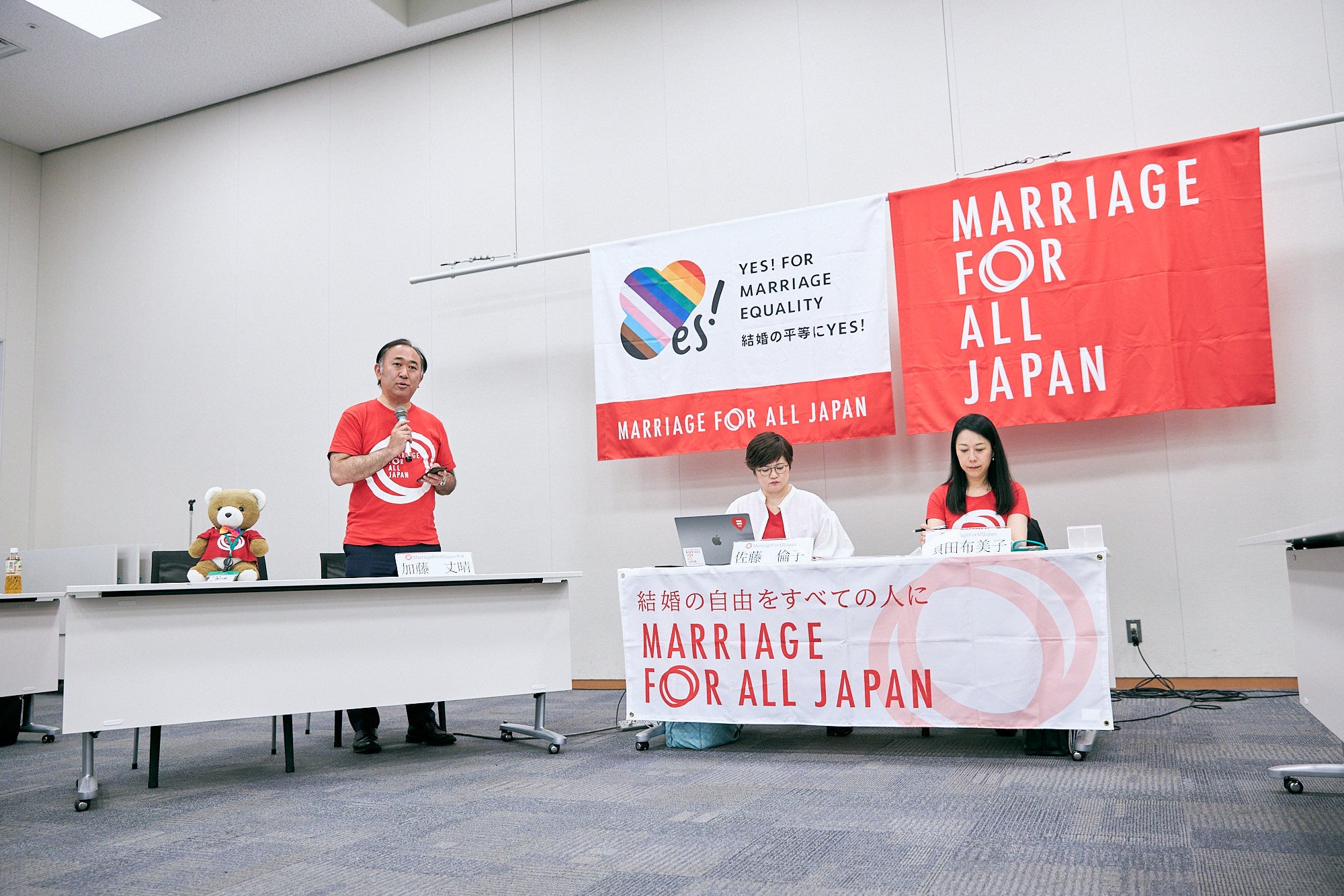 「Marriage For All Japan – 結婚の自由をすべての人に」という法人名は、そのような結婚の自由(結婚という選択肢)が、異性カップルであるか同性カップルであるかにかかわらず、平等に用意されるべきであるという思いを表したものです。私達は、この「結婚の自由をすべての人に」訴訟をPRという形でサポートするほか、イベントやセミナー、メディア出演、調査研究、ロビイングなどを通じて、結婚の平等(同性婚の法制化)の実現を目指します。