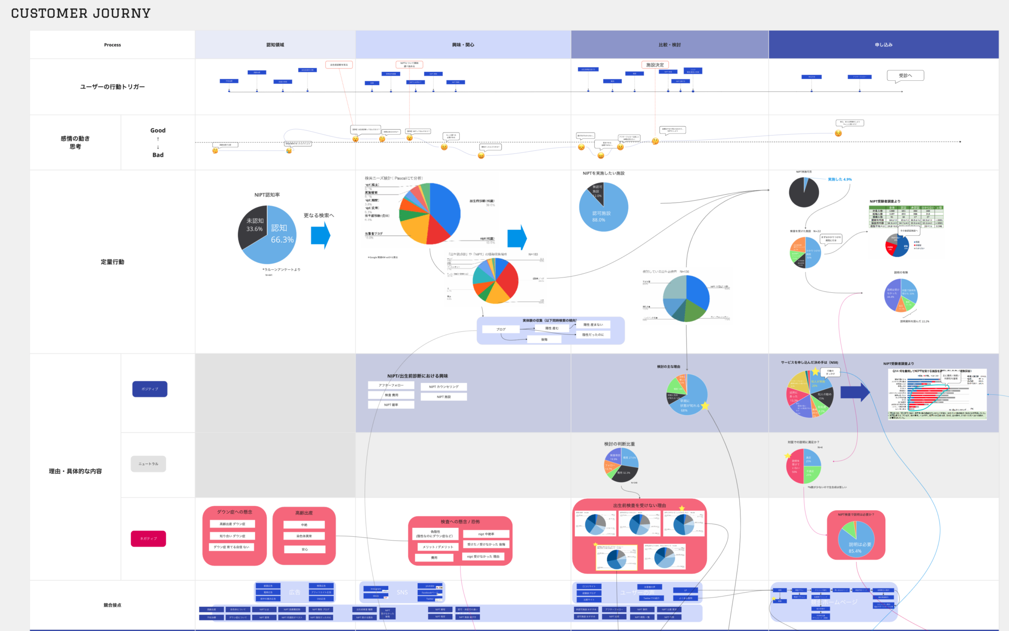 カスタマージャーニーは、企業が顧客のニーズや要求を理解し、最適なエクスペリエンスを提供する為に使用される、つまりは最終的にサービスの全体感を持った施策立案の為に使われることが多いです。
