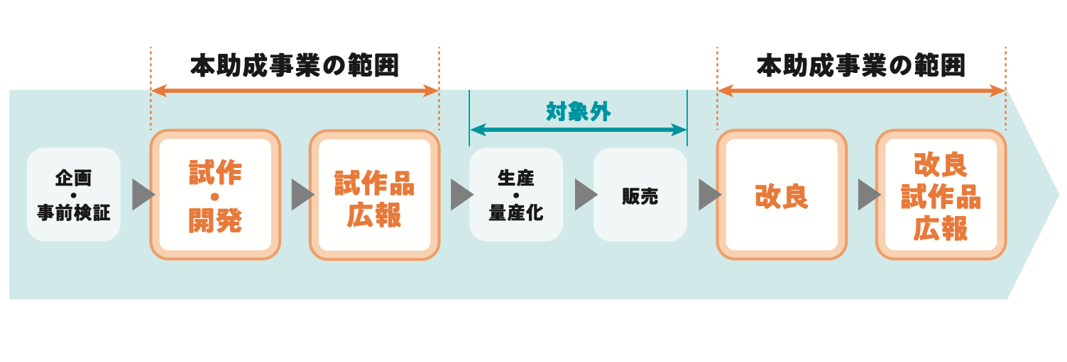 ● 新規開発だけでなく、既存製品の改良や開発・改良後の普及(試作品広報)も支援対象
