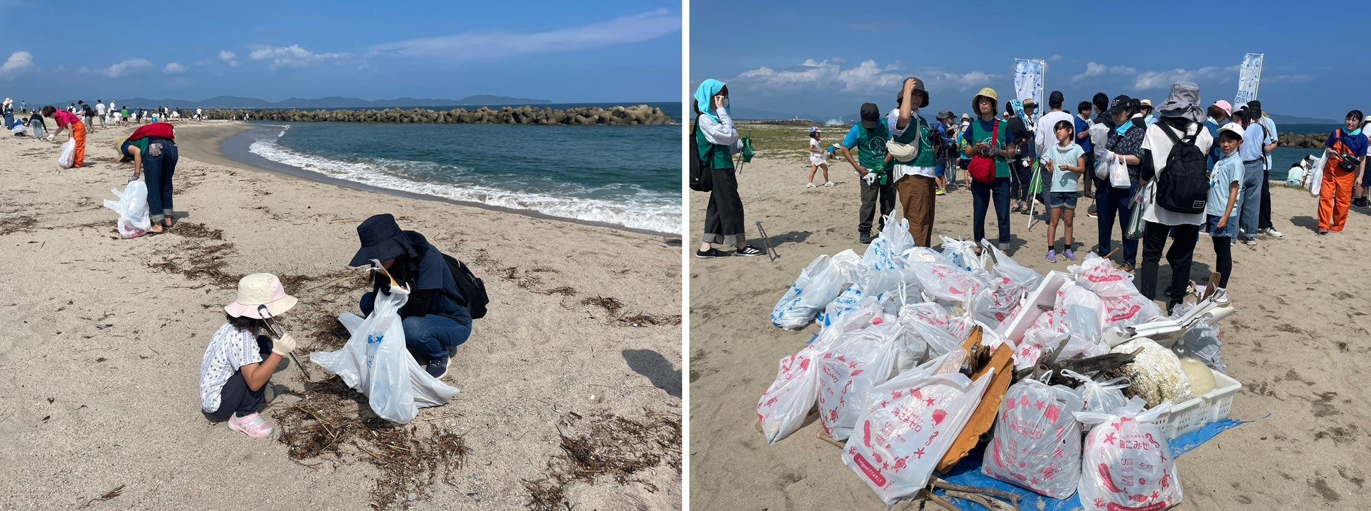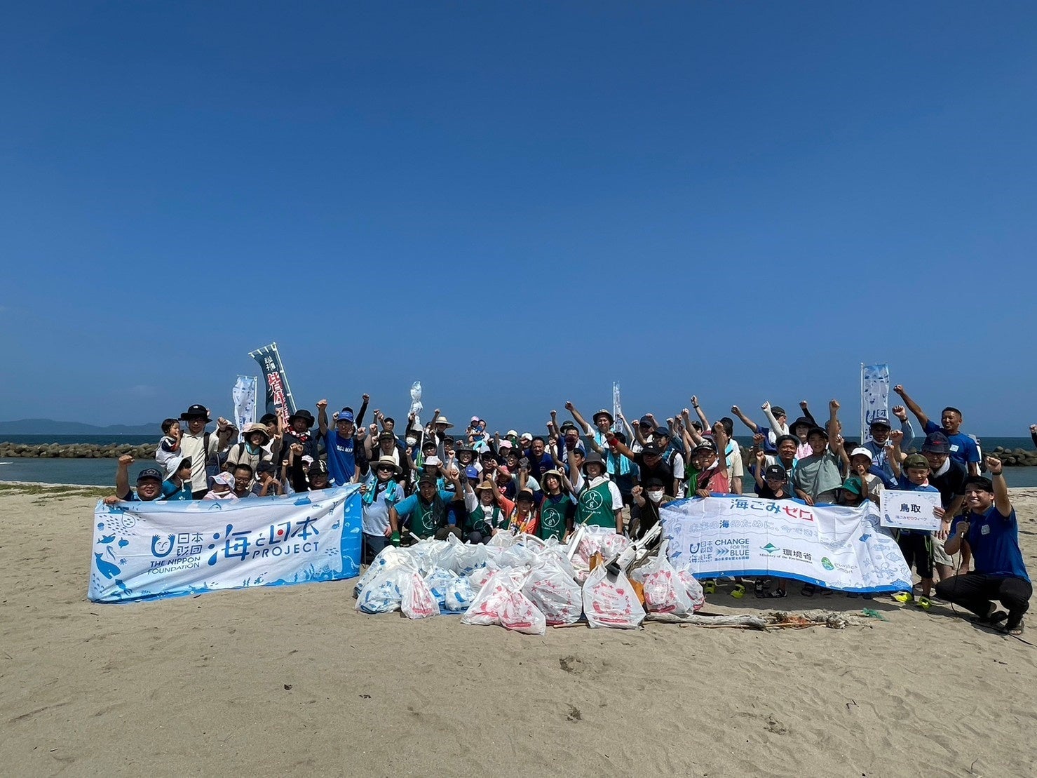 多様な水産資源に支えられている鳥取県。その豊かな海の恵みを感じながら、豊かな海の資源を守っていこう!と鳥取県西部の皆生海岸で「海ごみゼロ大作戦!海ごみ清掃でお宝探しPart2」を開催しました。当日は、皆生海岸近くの保育園に通う子どもたちが参加するなど、総勢143名が海洋ごみ清掃を行いました。