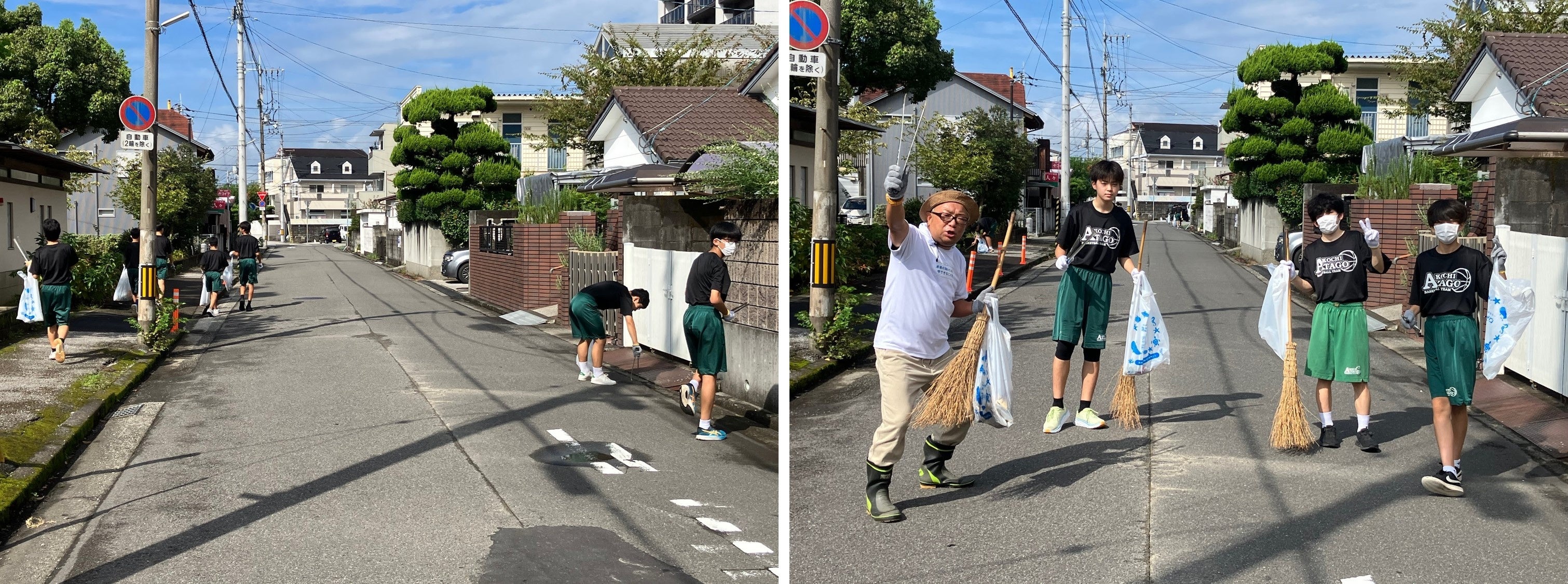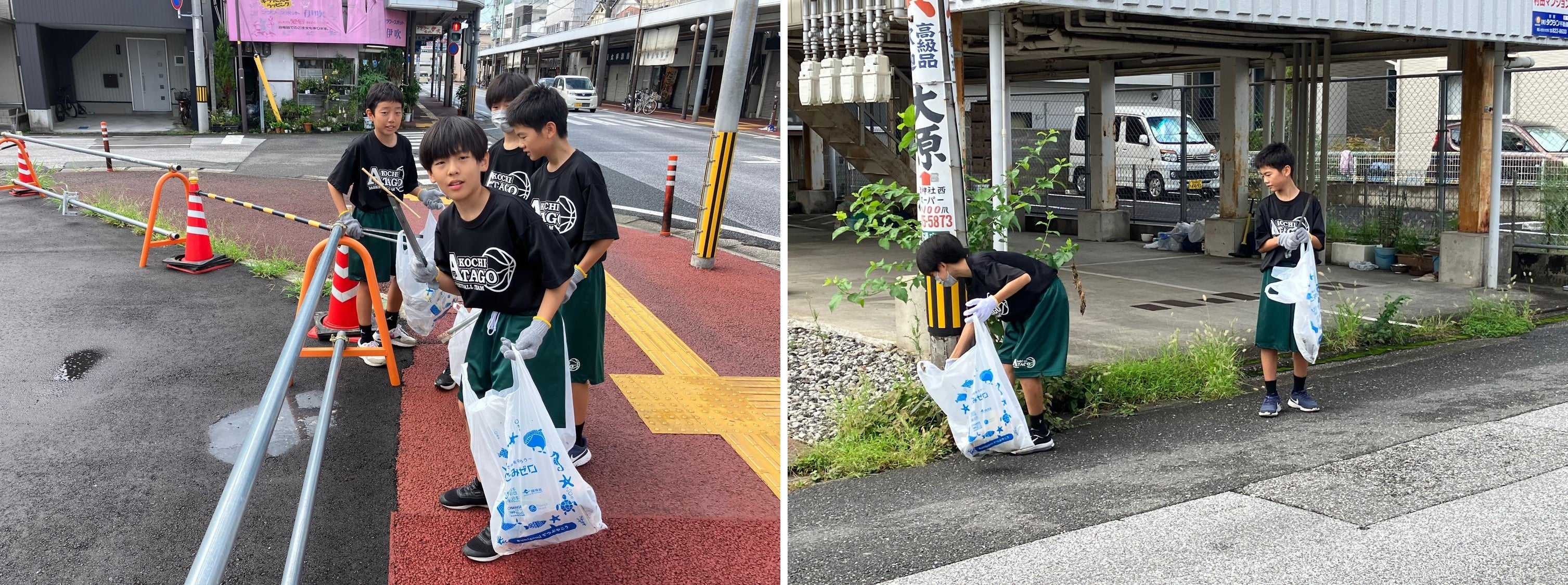高知市愛宕中学校のバスケットボール部員が地域の清掃活動を行いました