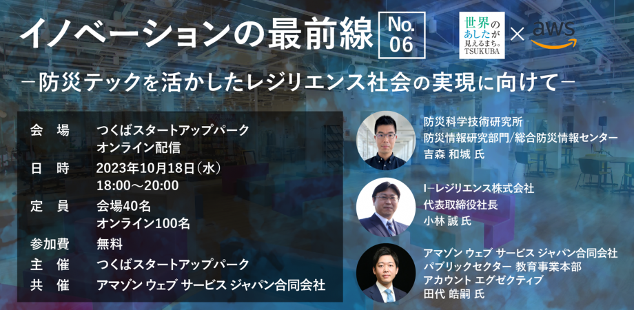 また、連携事業の一つとして、2023年10月18日(水)にはコラボイベント「イノベーションの最前線 No.06 -防災テックを活かしたレジリエンス社会の実現に向けて-」を開催します。