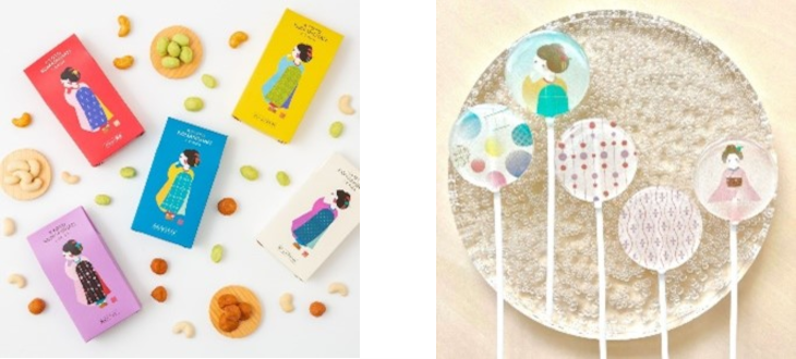オリジナルの和柄やこまめはんのキャラクターを描いた、甘いソーダ味のキャンディーです。