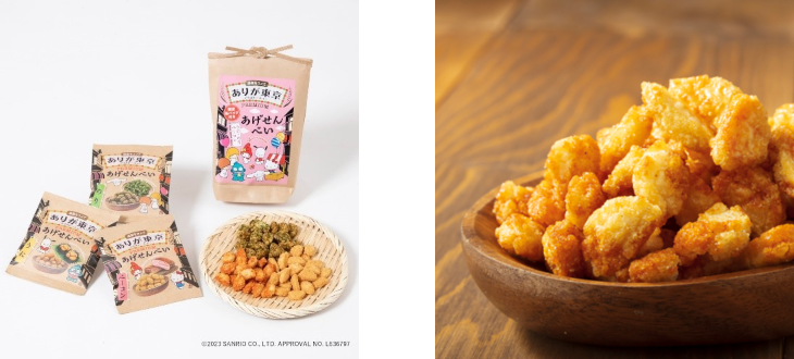国内産うるち米の生地を100%こめ油でカラッと揚げた小粒の揚げせんべいを、特製の味付けで仕上げました。SNSで「ハマる!」と話題です。「ありがとう」を伝える東京土産としてはもちろん、感謝を伝えるギフトにもちょっとしたサプライズにもぴったりです。