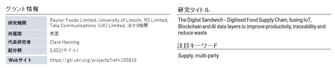 例えば、英国ではレイナルドフーズ社やリンコルン大学などの産学連携により、食品のサンドウィッチをモデルとしてデジタル化された食品サプライチェーンを構築するための試みがスタートしています。