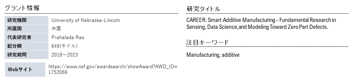 ネブラスカ大学では、センシングデータを活用した3Dプリントによる製造が研究しており、3DプリンティングとIoTを組み合わせたスマート生産が進められていくと予想されます。