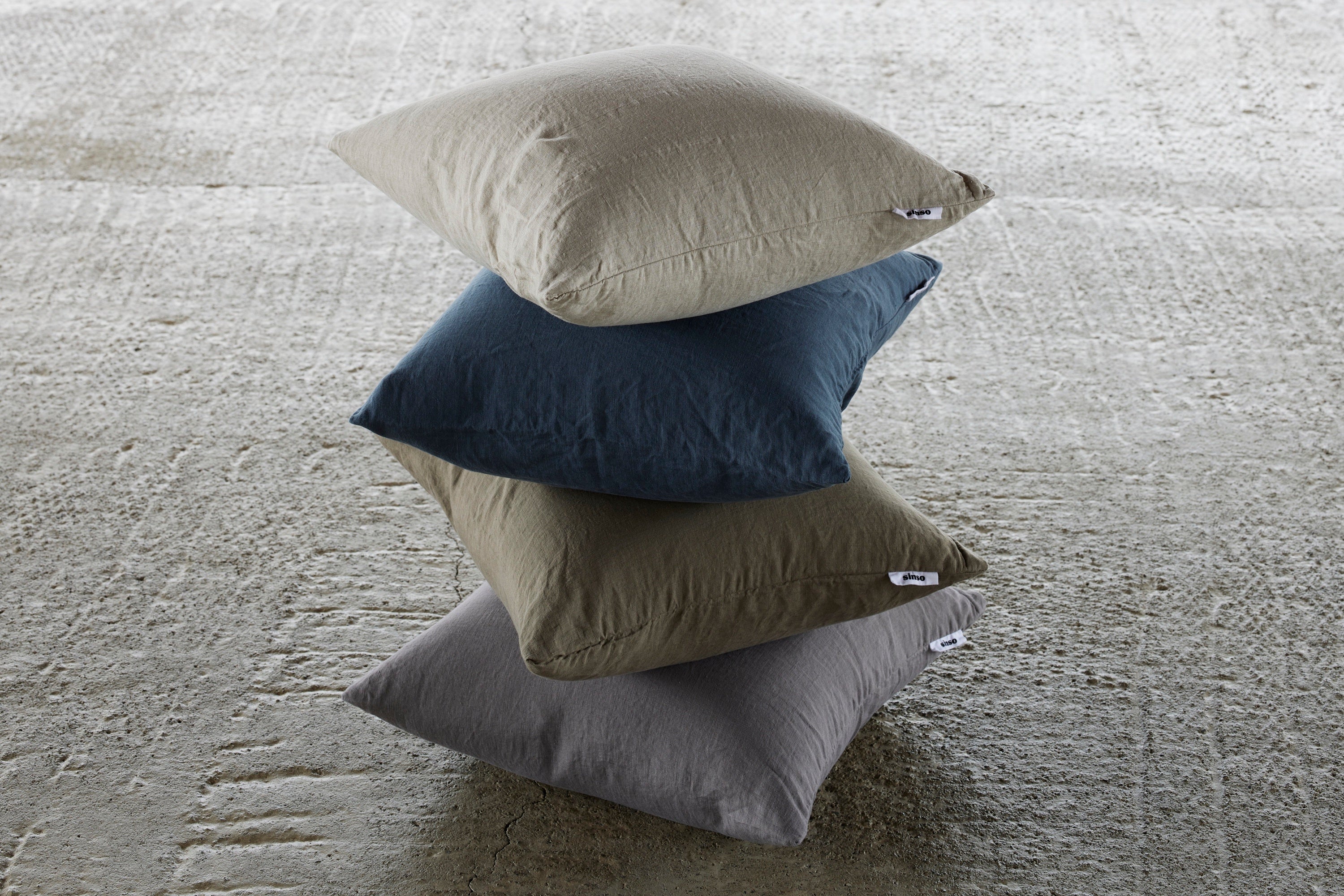 細い麻糸を使用した軽くて柔らかい肌触りのクッションカバー。生地を漂白してから染めるのではなく、天然の生成りの上から染色しているため、一つひとつの色の風合いが異なります。