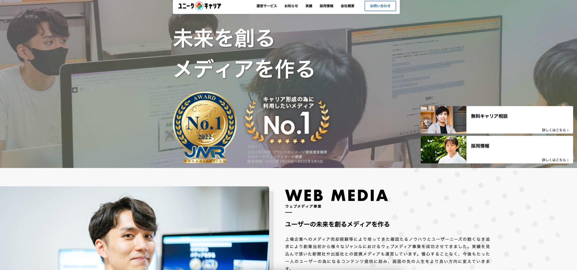 よって、求職者の未来を創るメディアの資産も活用しながら、実際に求職者へのサポートも通じ、メディア×キャリア支援の掛け合わせで、関わるすべての人の人生を正しい方向へと導いてまいります。